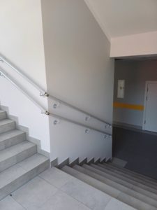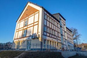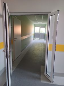 Zadbano również o pełne wymagania ochrony przeciwpożarowej. Wykonano drogę pożarową zakończoną placem manewrowym zapewniono dojazd poprzez przebudowany zjazd publiczny, a dostawę wody do celów ppoż. oparto o sieć hydrantów,