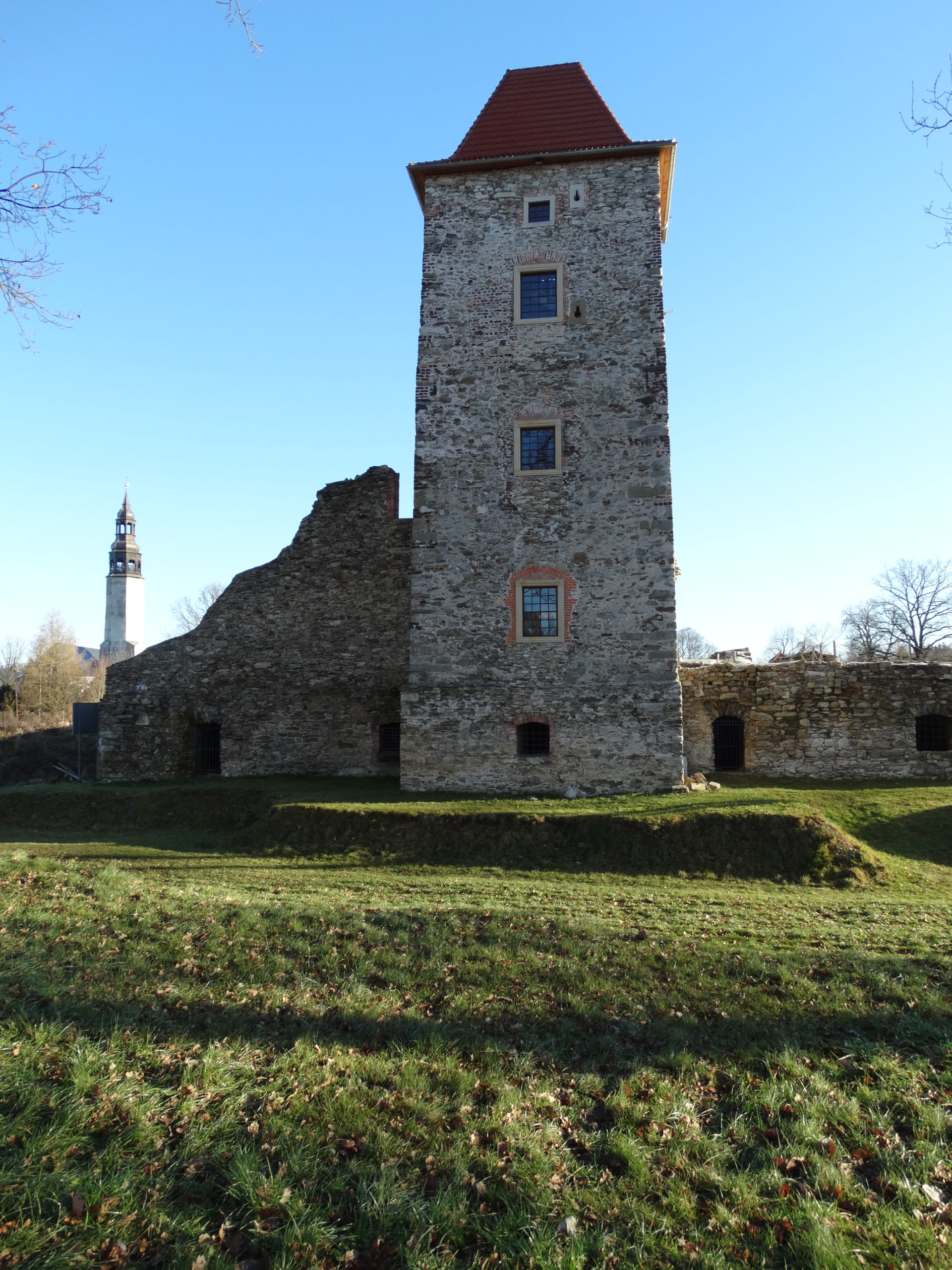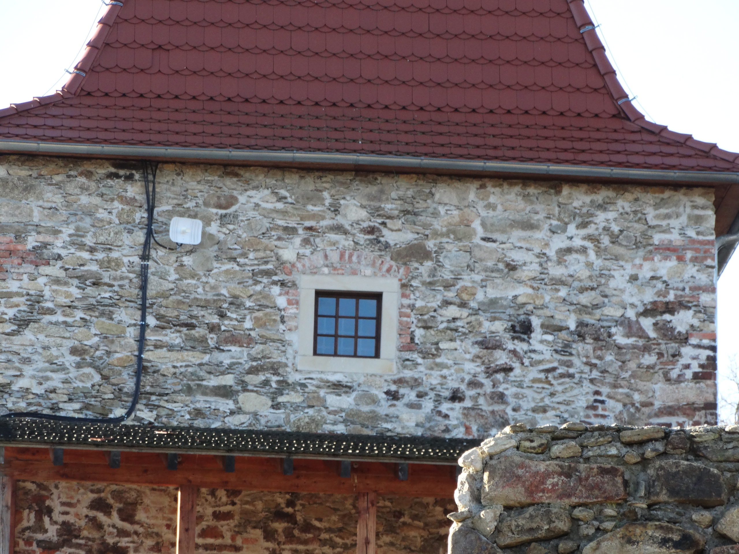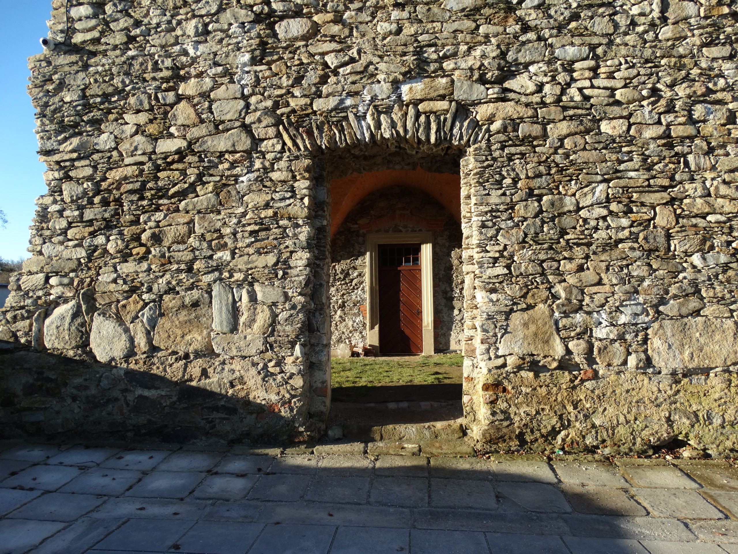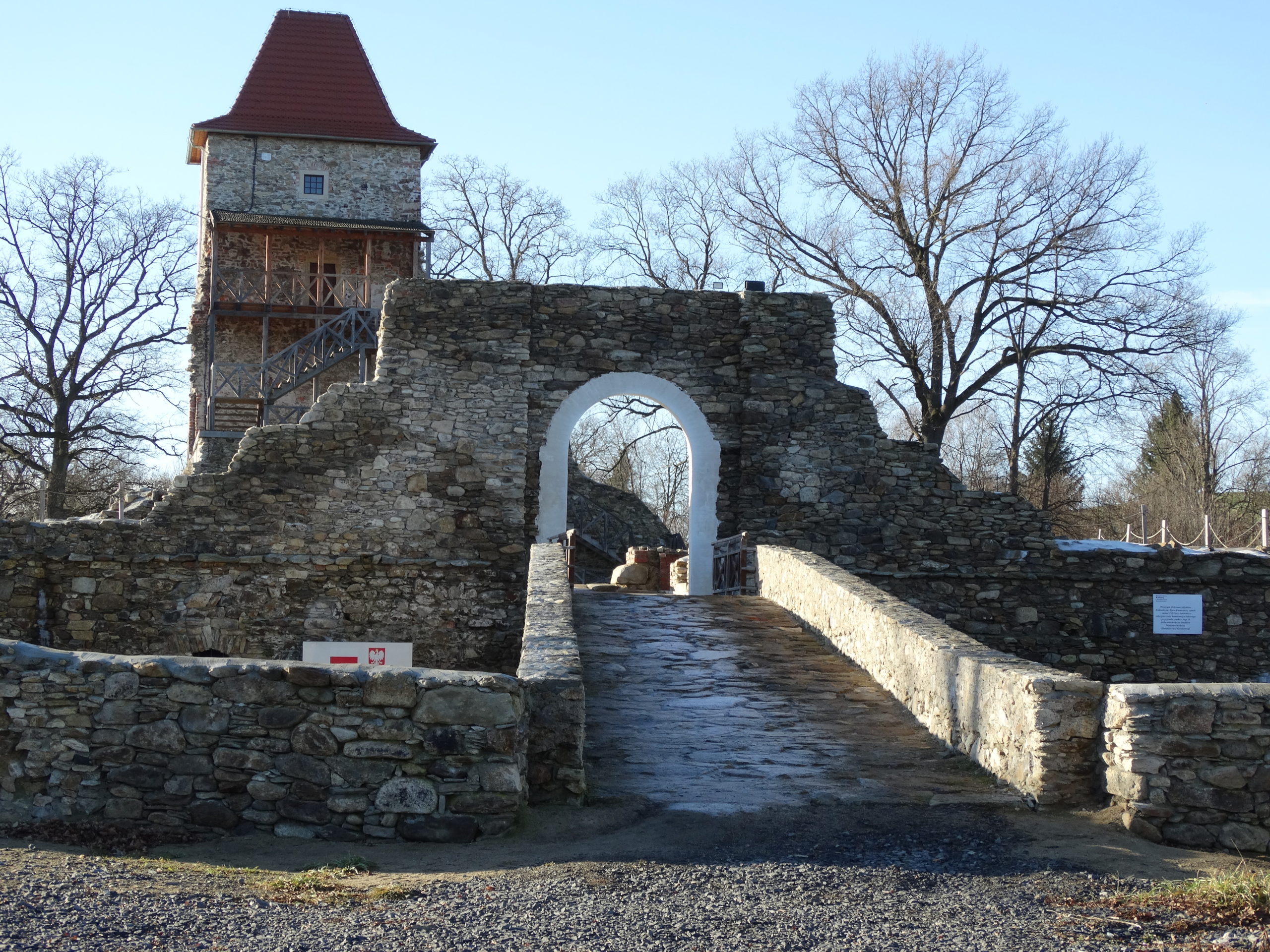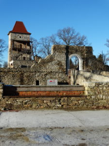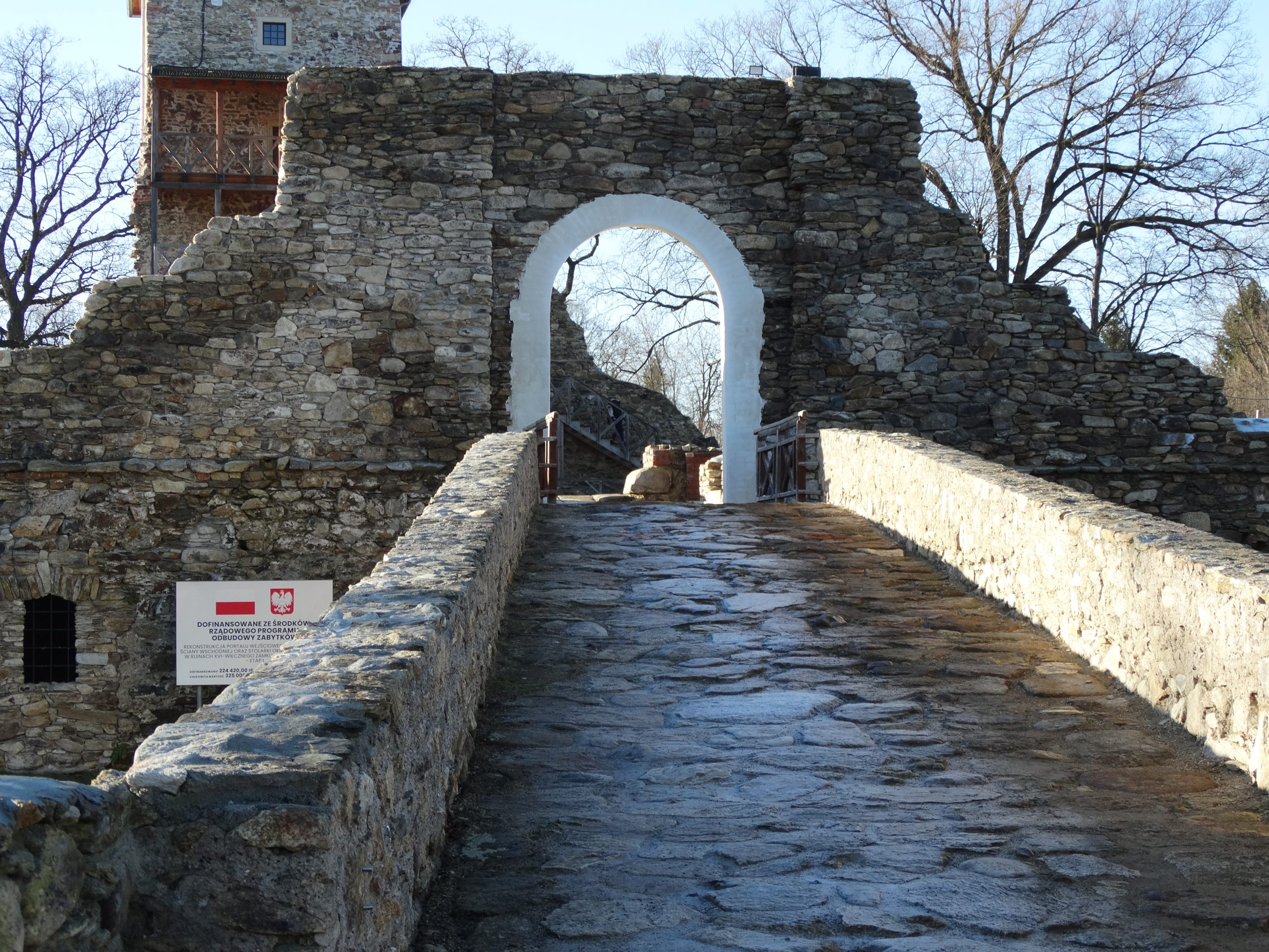 Rekonstrukcja portalu wejściowego z fragmentem ściany wschodniej oraz stolarki okiennej i drzwiowej w ruinach XVI-wiecznego zamku w Starej Kamienicy – etap I