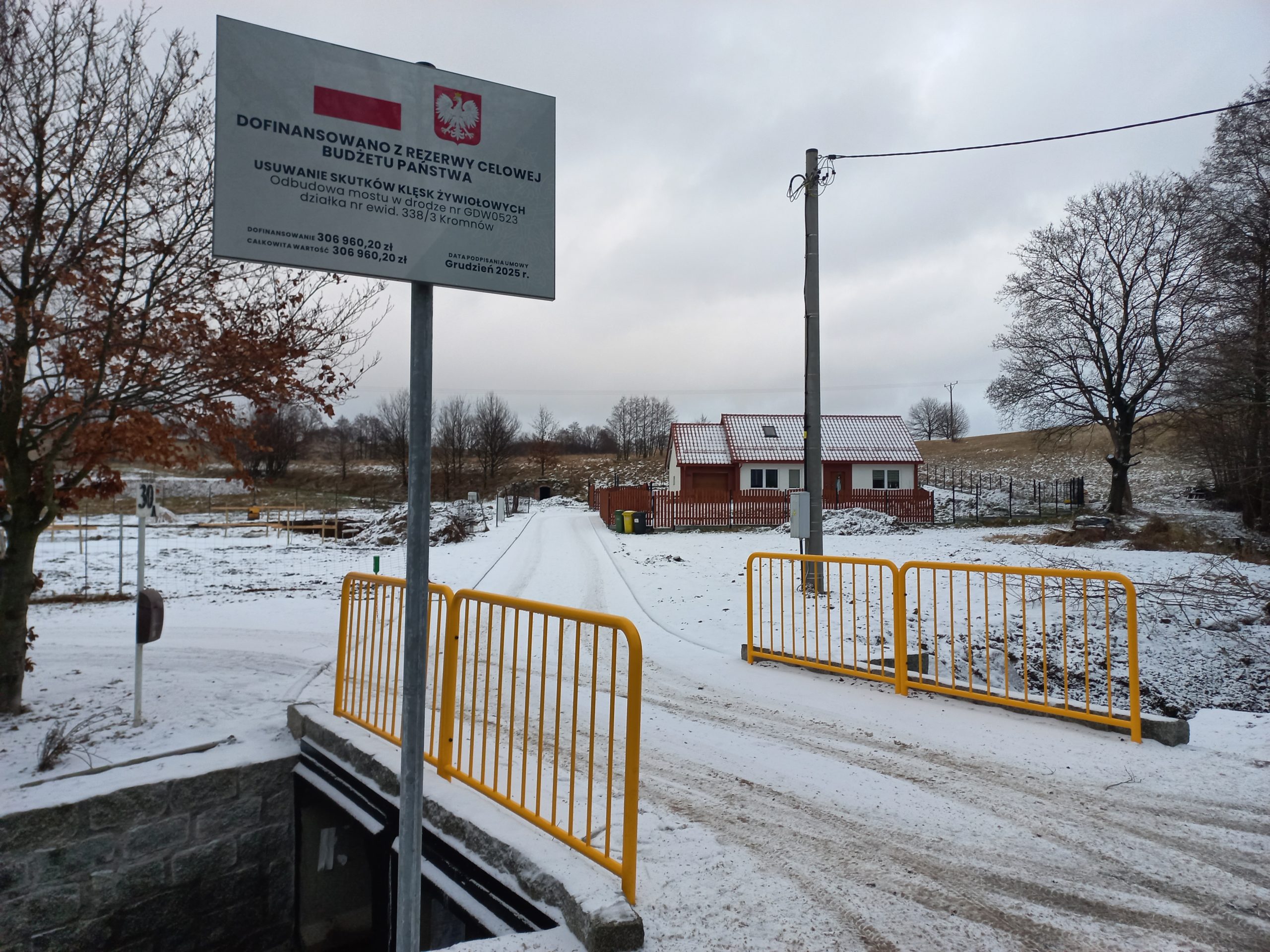 • Odbudowa mostu w drodze nr GDW0523 działka nr ewid. 338/3 Kromnów