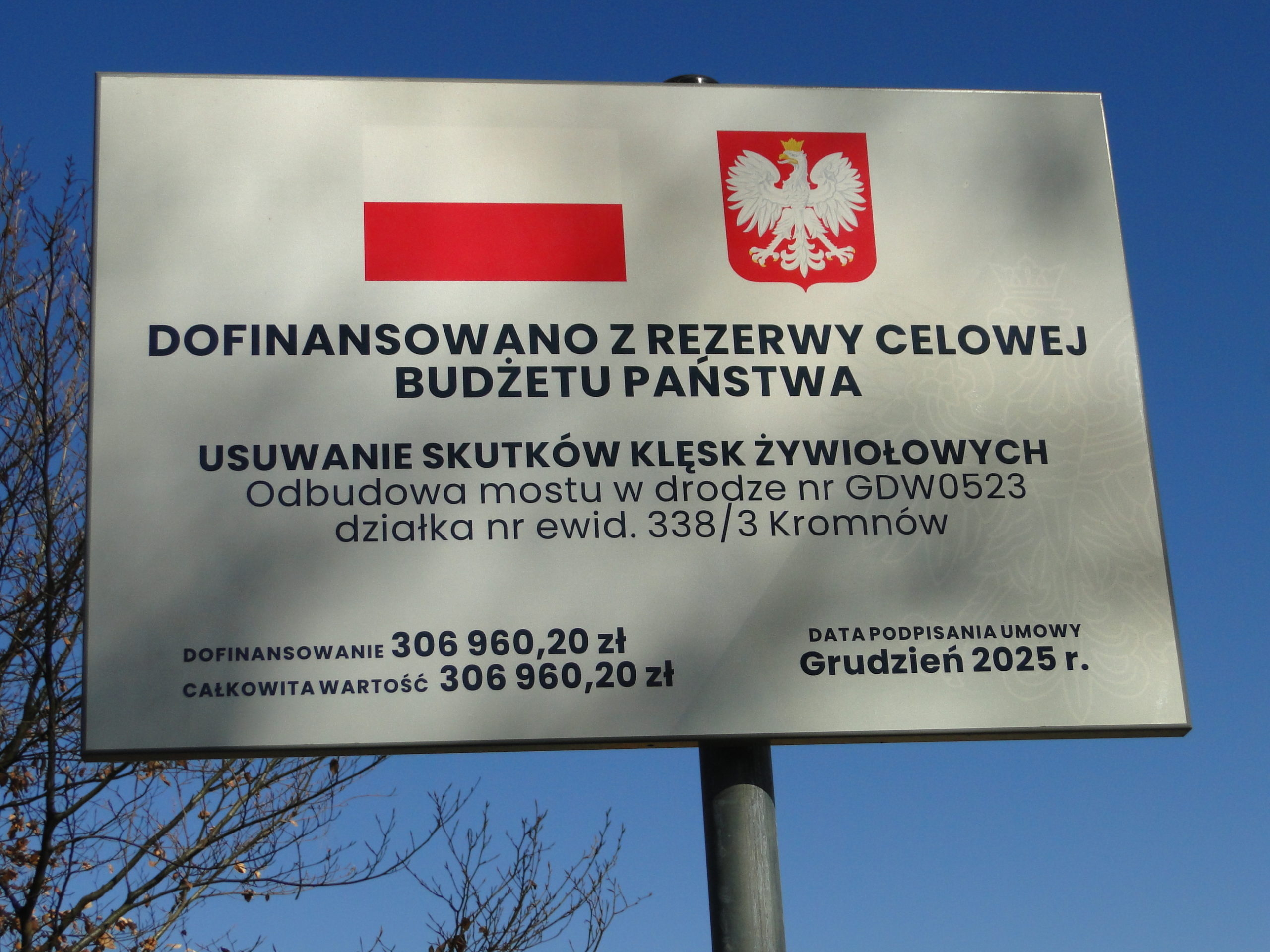 Realizacja inwestycji była możliwa dzięki wsparciu środków z Rezerwy Celowej Budżetu Państwa w ramach usuwania skutków klęsk żywiołowych