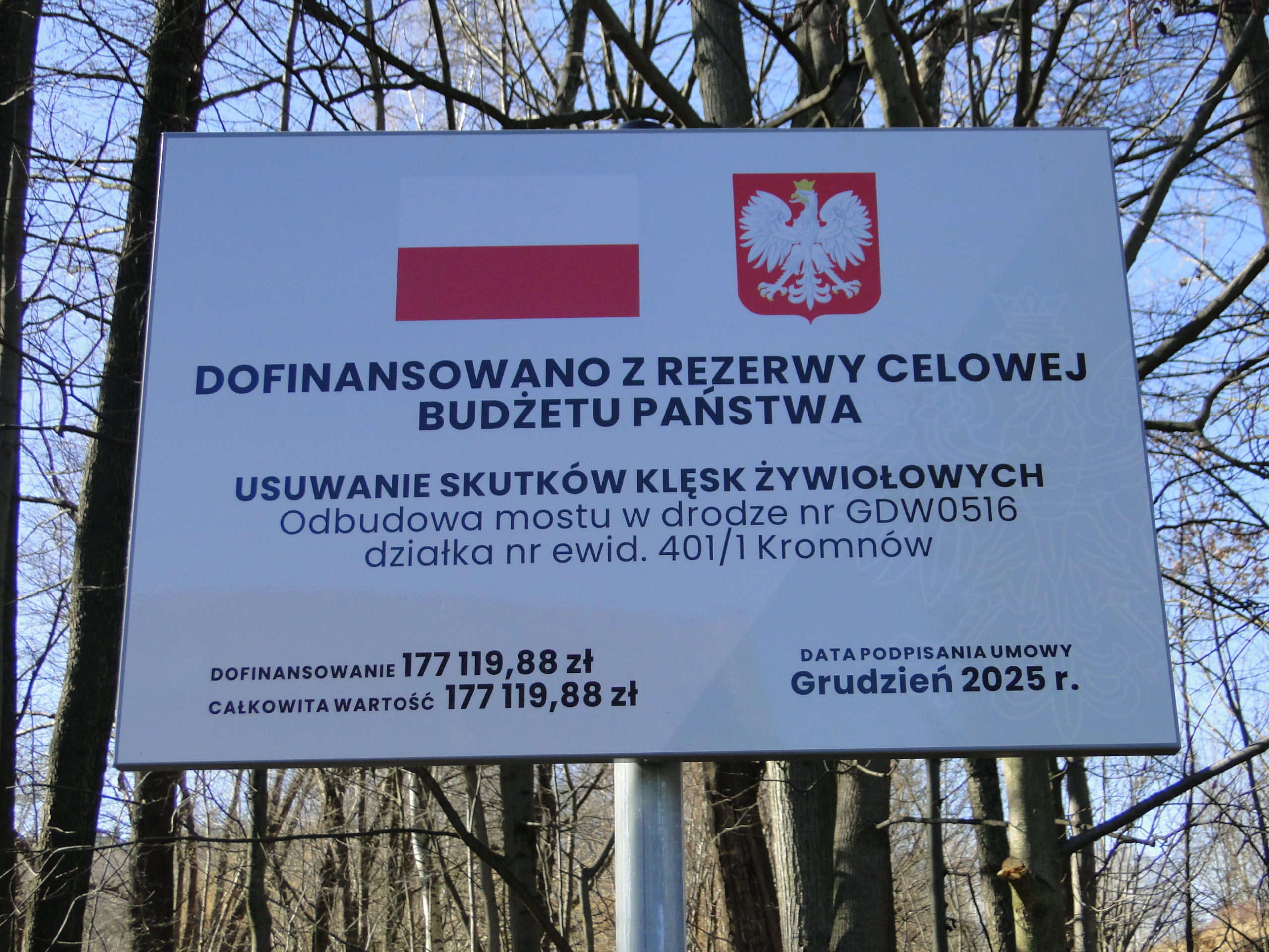 Realizacja inwestycji była możliwa dzięki wsparciu środków z Rezerwy Celowej Budżetu Państwa w ramach usuwania skutków klęsk żywiołowych