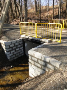 - odbudowę ścian czołowych oraz umocnień wlotu i wylotu z wykorzystaniem kamienia,